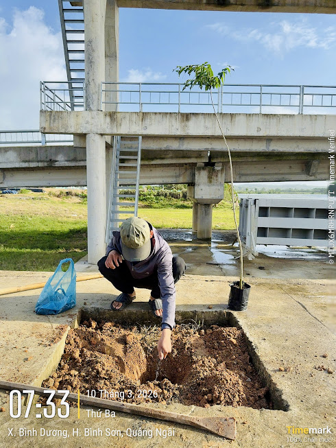 Để hưởng ứng phong trào trồng cây xanh trong dịp đầu năm, nhằm bảo vệ môi trường, nâng cao cảnh quan xanh - sạch - đẹp tại các công trình thuỷ lợi do Công ty quản lý. Lãnh đạo Chi nhánh quản lý thuỷ nông số 1 tổ chức phong trào trồng cây đầu năm có sự kết hợp, hổ trợ của tổ, cụm trưởng, các tổ chức đoàn thể và Chi đoàn thanh niên trong đơn vị vào ngày 10/3/2026 tại công trình 03 đập ngăn mặn Trà Bồng, Bình Nguyên và Bình Phước. Thành phần gồm có: đại diện phòng Kỹ thuật Công ty, Bí thư đoàn thanh niên Công ty, Lãnh đạo Chi nhánh, tổ, cụm trưởng, các hội đoàn thể và Chi đoàn thanh niên của Chi nhánh. Dưới dây là một số hình ảnh ghi lại hoạt động trên:
